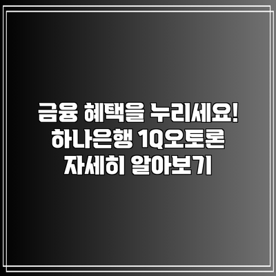 ✅ 하나은행 1Q오토론의 모든 조건과 혜택을 지금 바로 알아보세요.