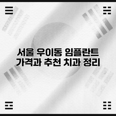 - 비용: 일반적으로 임플란트 치료는 비싸요. 평균적으로 서울 우이동에서는 90만원에서 140만원 정도의 비용이 듭니다.