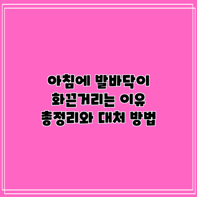 아침에 느끼는 발바닥의 화끈거림은 많은 사람들에게 익숙한 경험일 수 있어요. 이 현상은 하루를 시작하는 데 있어 불편함을 초래하고, 여러 가지 원인으로 인해 발생할 수 있습니다. 특히 이러한 증상이 반복된다면, 우리 몸에서 신경계나 혈액 순환 문제의 신호일 수 있어요. 이번 포스트에서는 아침에 발바닥이 화끈거리는 이유와 그에 대한 대처 방법을 제시하겠습니다.