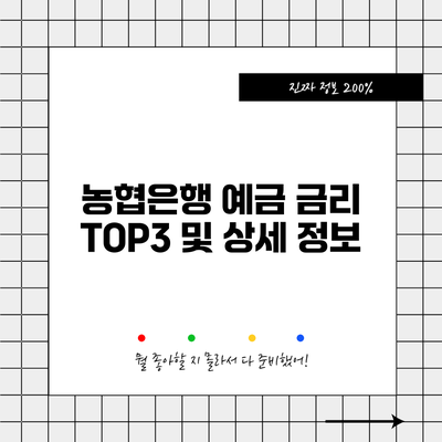 안정적인 금융 상품을 찾고 계신가요? 농협은행의 예금 상품은 당신의 자산을 보호하고, 안정적인 수익을 안겨줄 이상적인 선택이에요. 오늘은 농협은행의 최신 예금 금리 TOP3를 소개하고, 각각의 상품이 제공하는 혜택과 조건을 자세히 알아보겠습니다.