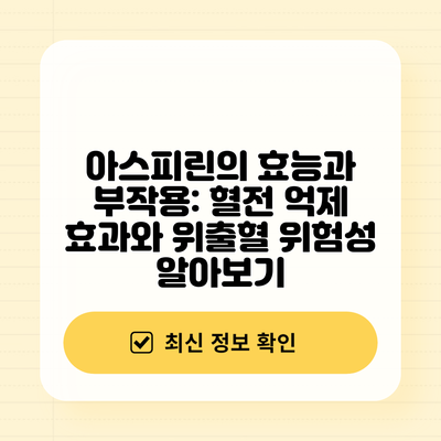 아스피린은 많은 사람에게 잘 알려진 약물이지만, 그 효능과 부작용에 대해 깊게 이해하고 있는 사람은 많지 않을 거예요. 아스피린은 혈전 억제와 심장병 예방의 효능으로 인해 널리 사용되고 있으나, 그 과정에서 위출혈과 같은 심각한 부작용을 초래할 수 있습니다.