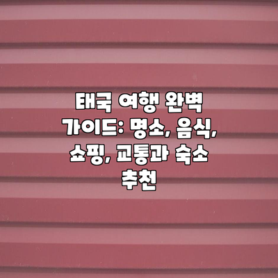 태국 여행 완벽 가이드: 명소, 음식, 쇼핑, 교통과 숙소 추천
