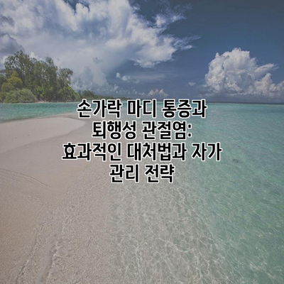 손가락 마디 통증은 일상적인 생활에 많은 불편을 초래합니다. 그 통증이 짧은 순간에 끝날 수 있을지라도, 여러 요인에 의해 지속적으로 악화될 수 있어, 그 원인과 대처법에 대해 진지하게 고민해보아야 합니다. 이번 글에서는 손가락 마디 통증의 다양한 원인과 퇴행성 관절염을 관리하기 위한 팁, 그리고 효과적인 자가 관리 방법을 자세히 소개하겠습니다.