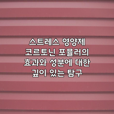 스트레스 영양제 코르토닌 포뮬러의 효과와 성분에 대한 깊이 있는 탐구