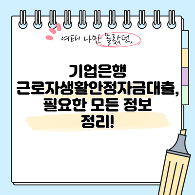 기업은행 근로자생활안정자금대출, 필요한 모든 정보 정리!