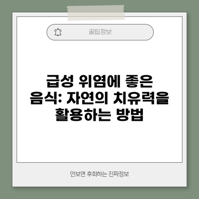 급성 위염을 완화하기 위해 섭취할 수 있는 여러 가지 음식들이 있어요. 이 음식들은 염증을 줄이고 위를 진정시키는 데 도움을 줄 수 있죠.