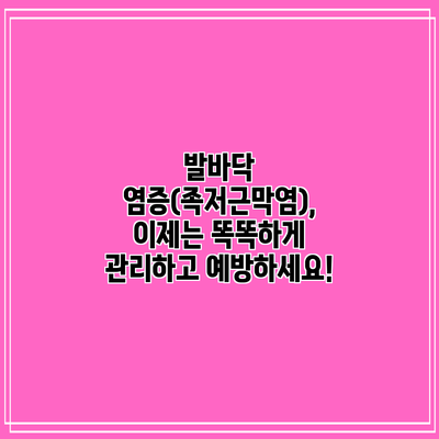 발바닥 염증은 많은 사람들이 경험하는 고통스러운 문제로, 이를 관리하고 예방하는 방법을 아는 것이 중요해요. 발바닥 염증을 효과적으로 관리하기 위해서는 그 원인과 증상을 이해하고, 적절한 예방 조치와 치료법을 알아두는 것이 필요해요.