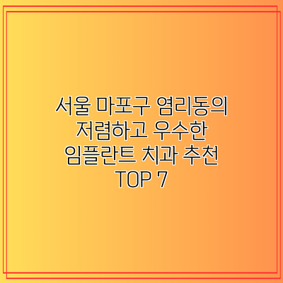서울 마포구 염리동의 저렴하고 우수한 임플란트 치과 추천 TOP 7