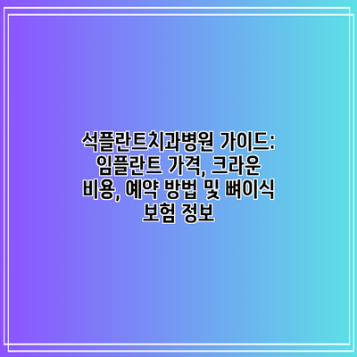 석플란트치과병원에서의 임플란트 및 크라운 비용은 여러 요인에 따라 달라져요.