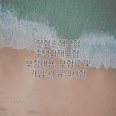 한화손해보험 주택화재보험: 보장내용, 보험료 및 가입 시 유의사항