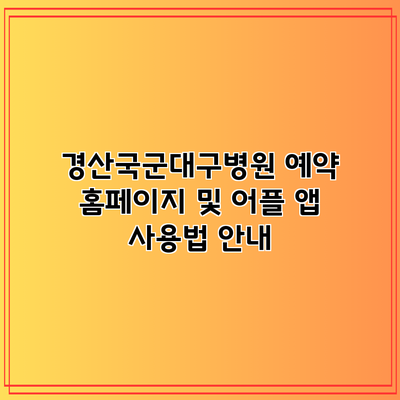 경산국군대구병원 예약 홈페이지 및 어플 앱 사용법 안내