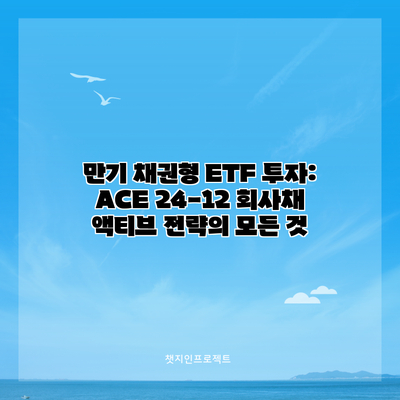 투자 세계는 언제나 변동성이 가득 차 있습니다. 그렇기에 투자자들은 안정성과 수익성을 동시에 추구할 수 있는 전략을 찾아야 합니다. 그 중 하나가 바로 만기 채권형 ETF 투자입니다. 특히 ACE 24-12 회사채 액티브는 단순히 안정적인 투자를 넘어, 유연한 자산 배분으로 더욱 높은 수익을 기대할 수 있는 기회를 제공합니다.