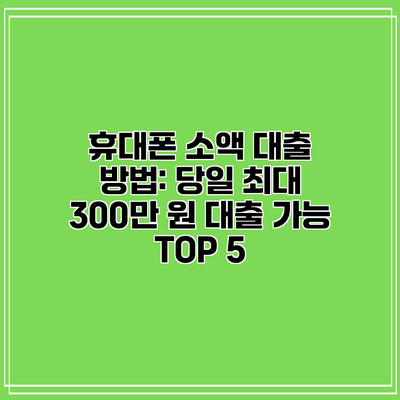 휴대폰 소액 대출은 요즘처럼 경제적 어려움이 많은 시대에 많은 사람들에게 유용한 금융 상품이 되고 있어요. 특히 직장 없이도 대출이 가능하다는 점은 많은 분들에게 매력적으로 다가오고 있답니다. 오늘은 당일 최대 300만 원까지 대출 받을 수 있는 휴대폰 소액 대출 방법 TOP 5를 소개해 드릴게요.