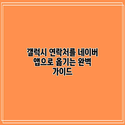 갤럭시 연락처를 네이버 앱으로 옮기는 완벽 가이드