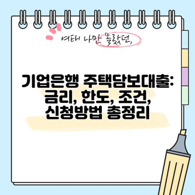 기업은행 주택담보대출의 모든 조건과 신청 방법을 자세히 알아보세요.