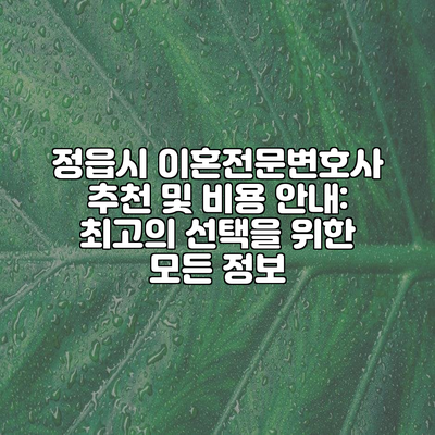 정읍시 이혼전문변호사 추천 및 비용 안내: 최고의 선택을 위한 모든 정보