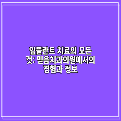 치아를 잃었다고 생각하면 어쩌면 불안하고 두려운 마음이 드실 거예요. 하지만 믿음치과의원에서의 임플란트 치료는 그 어떤 별다른 걱정 없이 건강한 미소를 되찾을 수 있도록 도와줍니다. 이 포스트에서는 믿음치과의원에서 제공하는 임플란트 치료에 대한 정보와 주의사항, 그리고 이용 방법을 자세히 알아보도록 하겠습니다.
