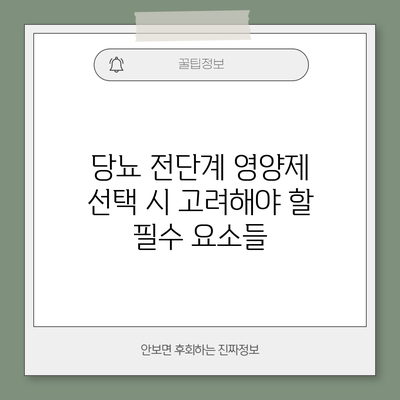 당뇨 진단 전 단계에서 영양제를 선택할 때 몇 가지 중요한 요소가 있어요. 먼저, 어떤 성분이 포함되어 있는지 살펴야 해요. 그 다음, 제품의 품질과 안전성을 확인하고, 마지막으로 자신의 개인적인 건강 상태와 목표에 맞는 제품을 선택하는 것이 중요하답니다.