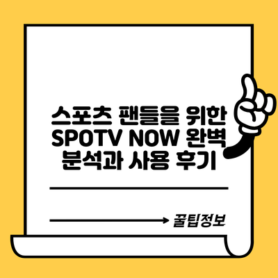 스포츠 팬들에게 더할 나위 없는 플랫폼, SPOTV NOW의 유용성에 대해 여러분께 들려드릴게요. 스포츠를 사랑하는 팬이라면 누구나 만족할 만한 서비스인 이 플랫폼은 스포츠 중계의 새로운 기준을 제시하고 있답니다. 이제 SPOTV NOW의 장단점을 자세히 분석해 보고, 여러분에게 적합한 선택인지 판단해 보도록 할까요?