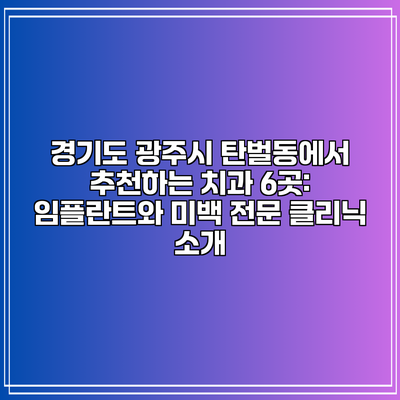 경기도 광주시 탄벌동에서 믿을 수 있는 치과를 찾는 것은 정말로 중요한 결정이에요. 특히, 임플란트나 미백, 크라운 같은 다양한 치료 옵션이 있다면 선택의 폭이 넓어서 한층 더 고민이 될 수 있습니다. 여기서 제가 추천하는 6곳의 치과는 오랜 경험과 전문성을 기반으로 여러분의 구강 건강을 지킬 수 있는 곳들입니다.