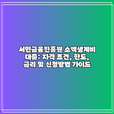 서민금융진흥원 소액생계비 대출: 자격 조건, 한도, 금리 및 신청방법 가이드