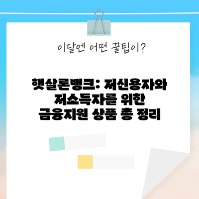 햇살론뱅크: 저신용자와 저소득자를 위한 금융지원 상품 총 정리
