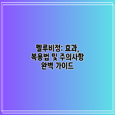 ✅ 펠루비정의 복용법과 주의사항을 자세히 알아보세요.